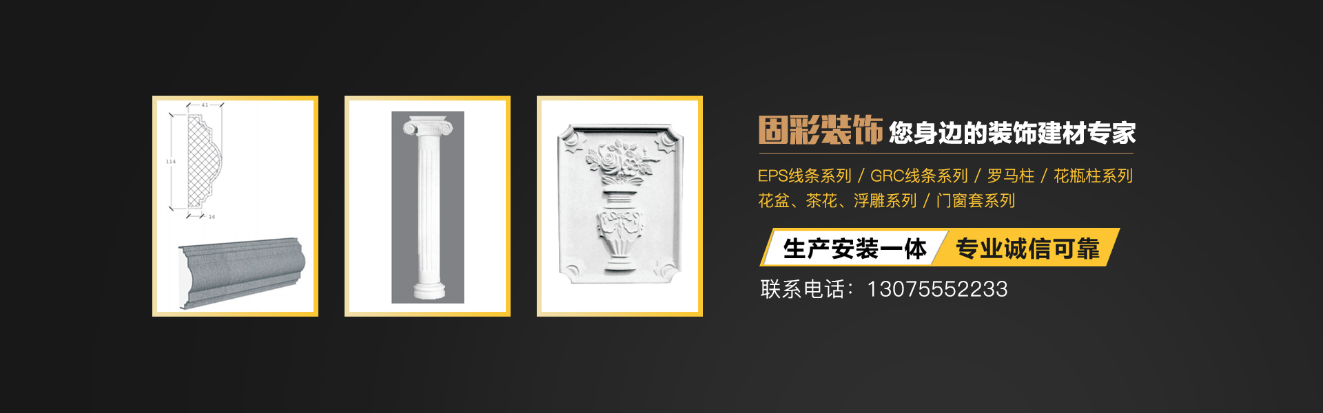 推薦廠家:合肥固彩新型建材公司,公司多年生產(chǎn)EPS裝飾線條,擁有目前較先進(jìn)的流水線生產(chǎn)設(shè)備,集研發(fā)、生產(chǎn)、加工、銷售、安裝為一體。而且擁有一...